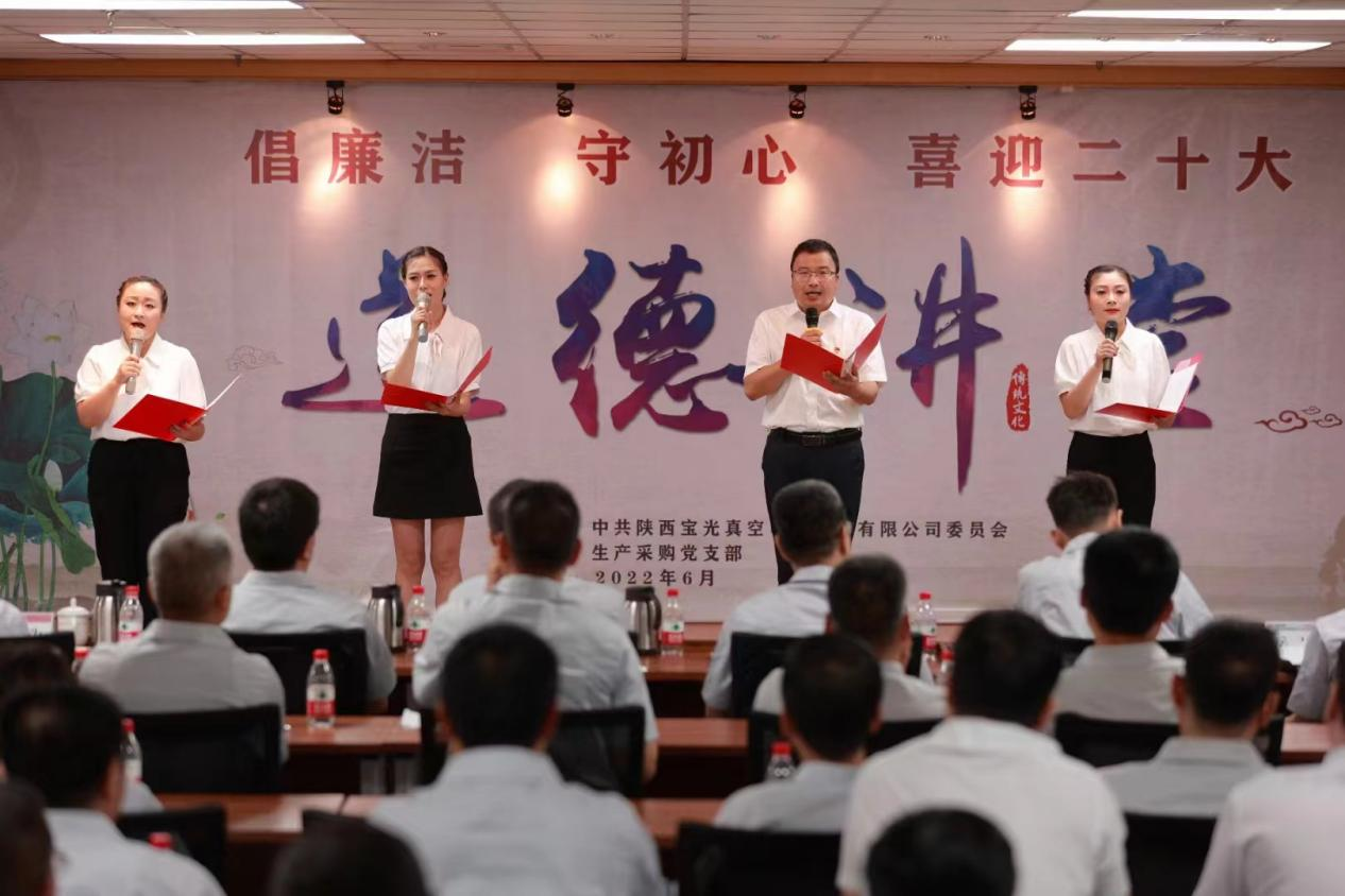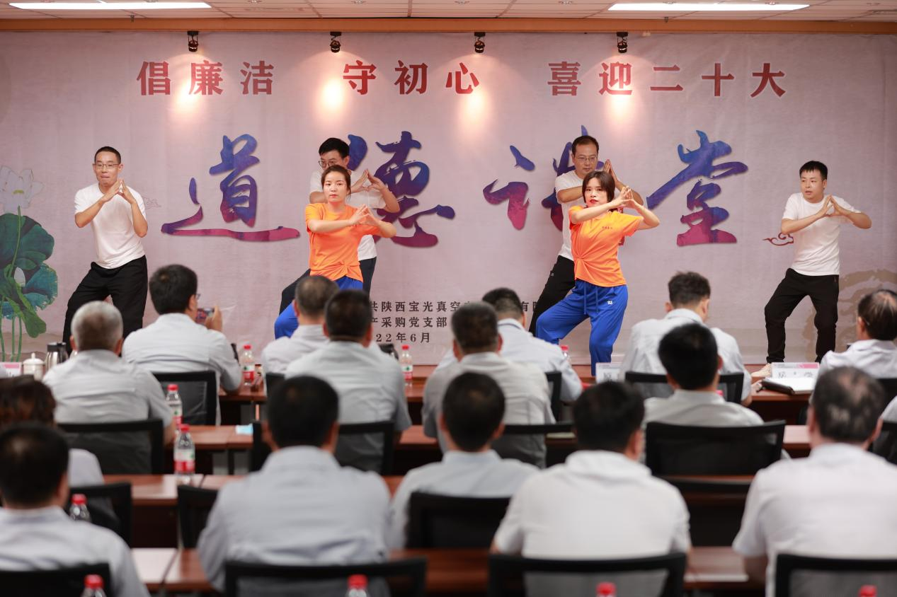 為將黨史學習教育不斷引向深入,全面提升廣大職工道德素養,進一步促進企業精神文明建設,切實激發廣大干部職工砥礪奮進、爭開新局的信心和決心,以更加飽滿的工作熱情迎接建黨101周年和黨的二十大的勝利召開,6月28日下午,由寶光股份黨委主辦,生產采購黨支部承辦的“倡廉潔、守初心、喜迎二十大”主題道德講堂如期舉行。