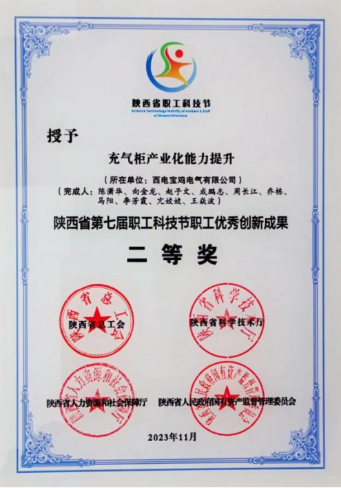 陜西省職工優(yōu)秀創(chuàng)新成果二等獎——西電寶雞電氣 “充氣柜產(chǎn)業(yè)能力提升”