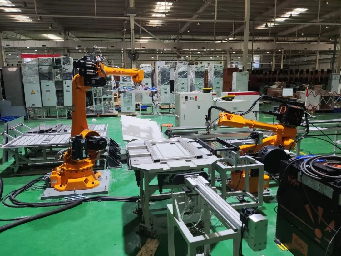 充氣柜焊接項目是在充氣柜氣箱單件筋板焊接時采用搬運機器人和焊接機器人相互配合作業(yè),將人工手工作業(yè)模式轉(zhuǎn)向自動化方向。項目實施后,單面箱體筋板從手工焊接2.5小時縮短至自動化焊接1.5小時,同時有效提升焊縫的一致性,整體提升了焊接的外觀與質(zhì)量。