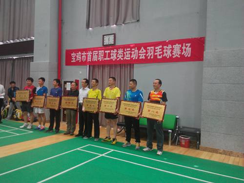 近日,寶雞市舉辦了首屆職工球類比賽運動會,寶光集團組隊參加了企業組乒乓球、羽毛球比賽。經過4天的緊張比賽,寶光集團獲得了企業組羽毛球賽團體第八名,寶雞市總工會領導為獲獎單位頒發了獎牌。(謝元紀)