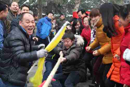 正月十四下午5:00,工會在老區邀請了疙瘩溝村的村民,敲起歡快的新春鑼鼓,扭起歡樂的秧歌、耍起精彩的社火同老區職工一起鬧元宵,共筑工農聯歡的友誼。同時,在老區還進行元宵節職工拔河比賽,并與疙瘩溝村村民進行了拔河友誼賽。新區元宵節職工拔河比賽在正月十五晚上進行,廣大職工熱情高漲,活動場面緊張激烈而又有序,在場的觀眾一齊為隊員加油助威.本次元宵節職工拔河比賽共有500余名職工參加。通過這次活動,增強了增強了團隊凝聚力,也讓職工在歡樂的氣氛中度過了元宵佳節。